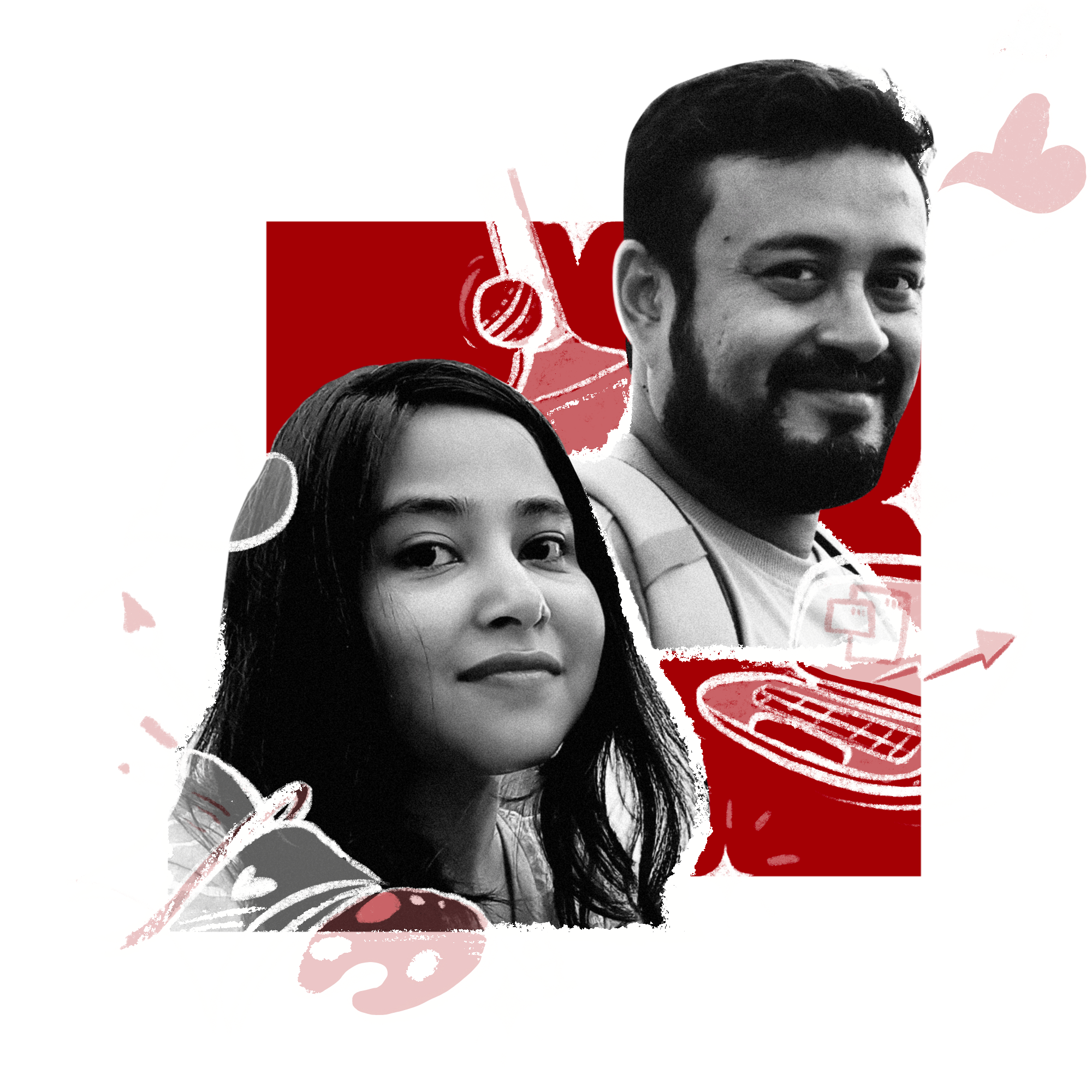 At the centre of Squarecherry Studio are two people: Ujjayini and Kaustav—partners in life, love, and now, creative rebellion. Ujjayini is the heart, the hands, and the ever-buzzing brain behind the bold colours and deeply personal illustrations you see here. She’s a visual storyteller who turns emotions, memories, and culture into art. Kaustav is the grounding calm to her creative chaos—bringing a quiet strength, steady optimism, and thoughtful intention to everything they do together. Together, they’re not just running a studio, they are making their dream a reality — equal parts wild and warm. A space that reflects who they are and invites others to feel seen, celebrated, and inspired.