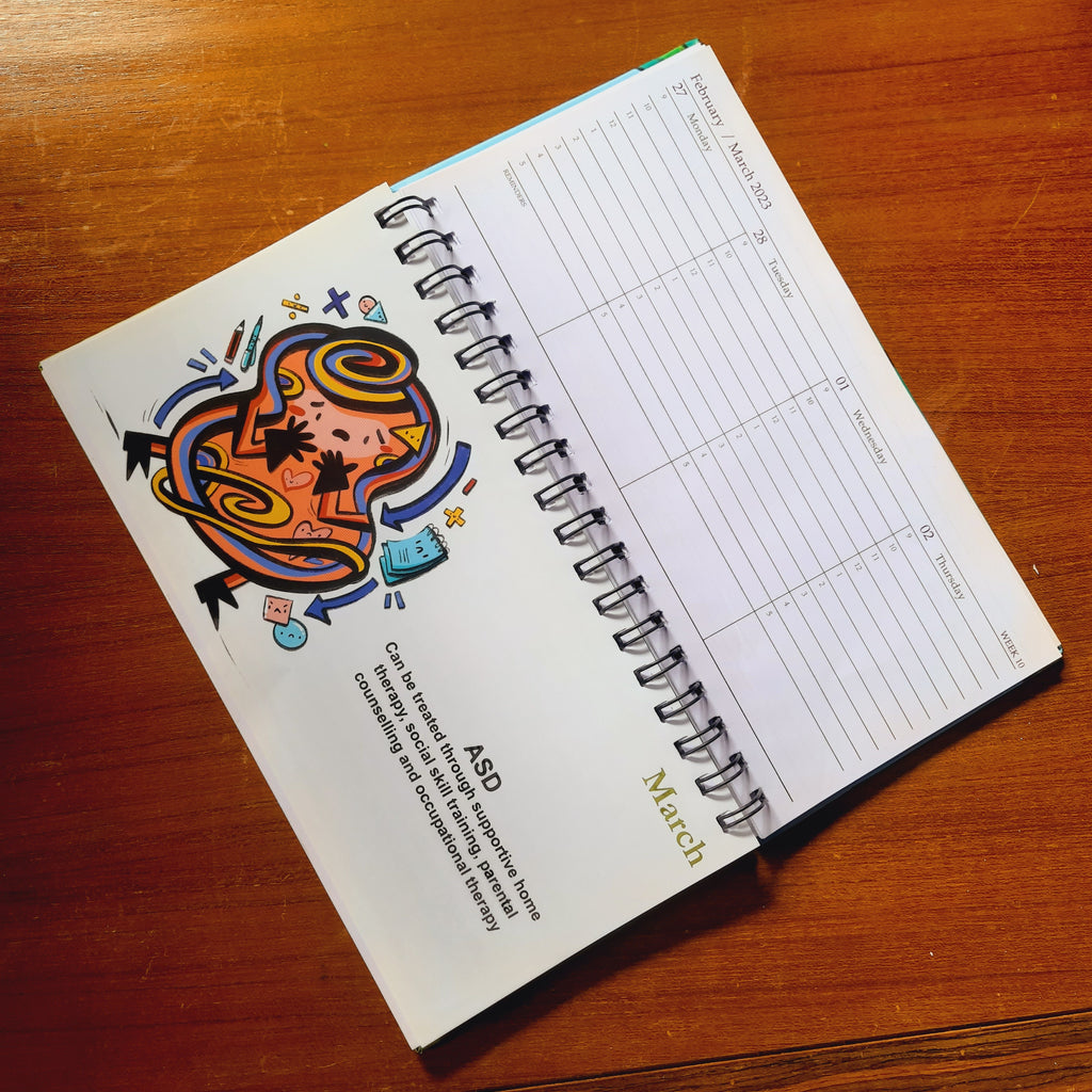 We created illustrations for a diary, based on mental ailments and their treatment, for WBCPCR. The aim and the thought behind the illustrations were to provide a face to each of these ailments in a manner to help parents better understand symptoms and the care to be provided according to their children's needs.