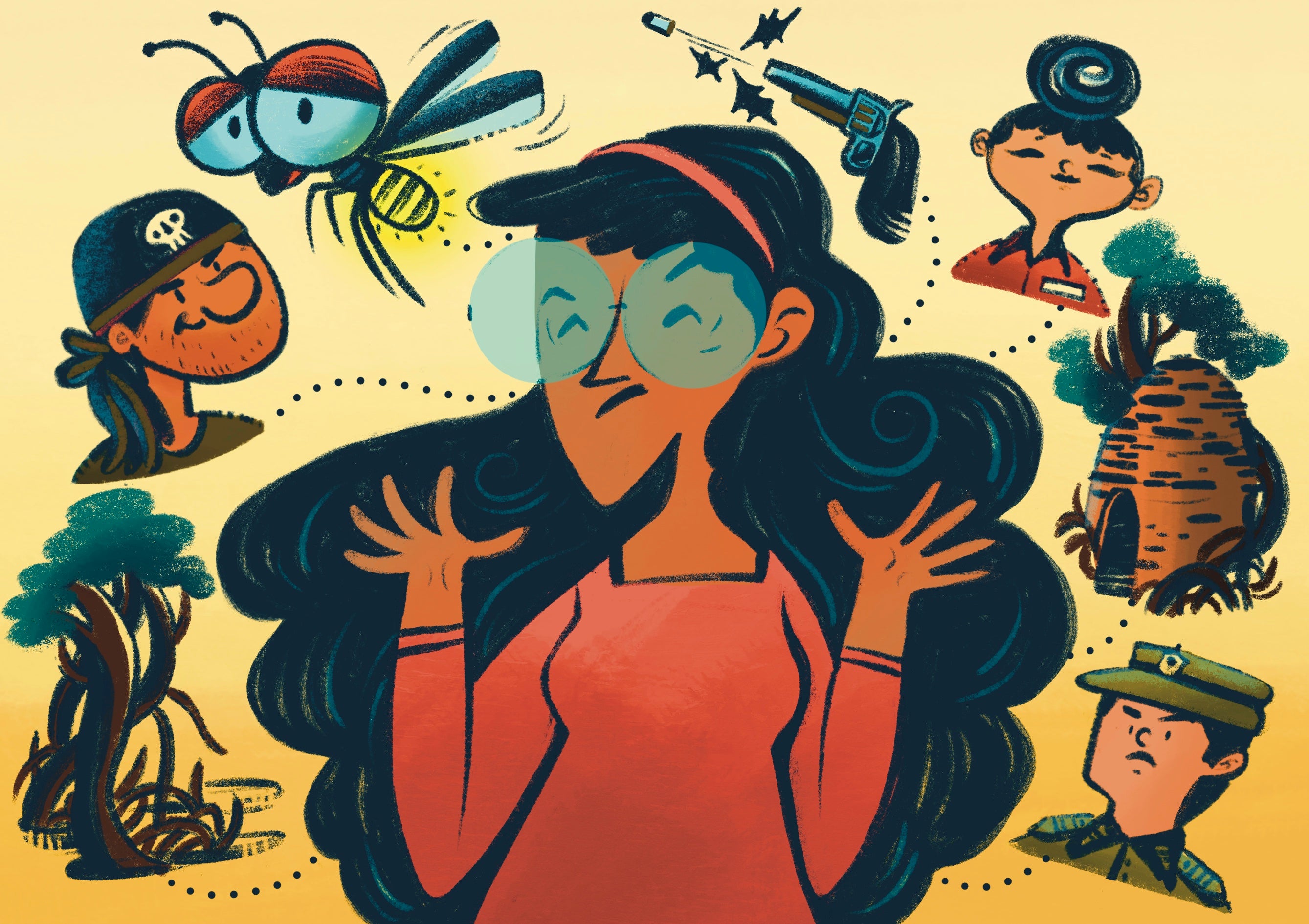 Illustrations for the novelette “Pupul O Bintaner Jonaki Mafiya” written by Indira Mukhopadhyay published as part of the Pujo edition in Hullor,a quarterly children's magazine by the West Bengal Commission for Protection of Child Rights (WBCPCR).AUG 2023